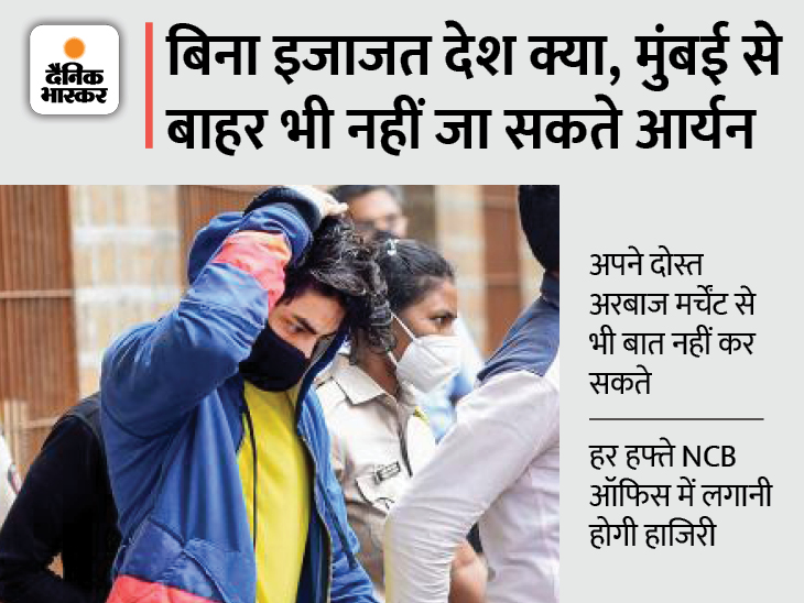 बॉम्बे हाईकोर्ट ने आर्यन को 14 शर्तों के साथ जमानत दी है। इसमें एक शर्त यह भी है कि हर शुक्रवार दोपहर 11 से 2 बजे के बीच NCB ऑफिस पहुंचकर उन्हें हाजिरी लगानी होगी। आर्यन खान 30 अक्टूबर को जेल से बाहर आए थे।